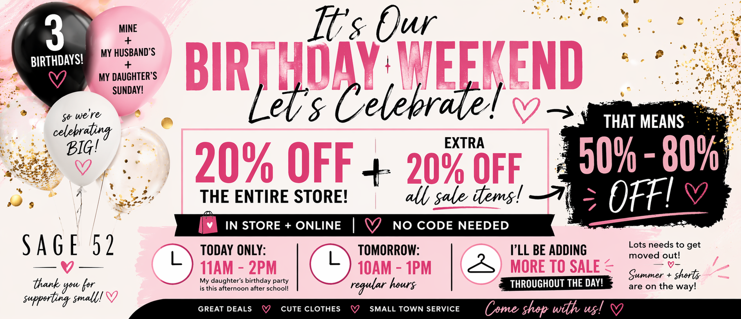 Discover on-trend women’s clothing, must-have seasonal looks, and one-of-a-kind pieces that elevate your personal style. Embrace fashion that fuels your journey with Sage 52, where passion meets inspiration and eclectic fashion is always in reach.