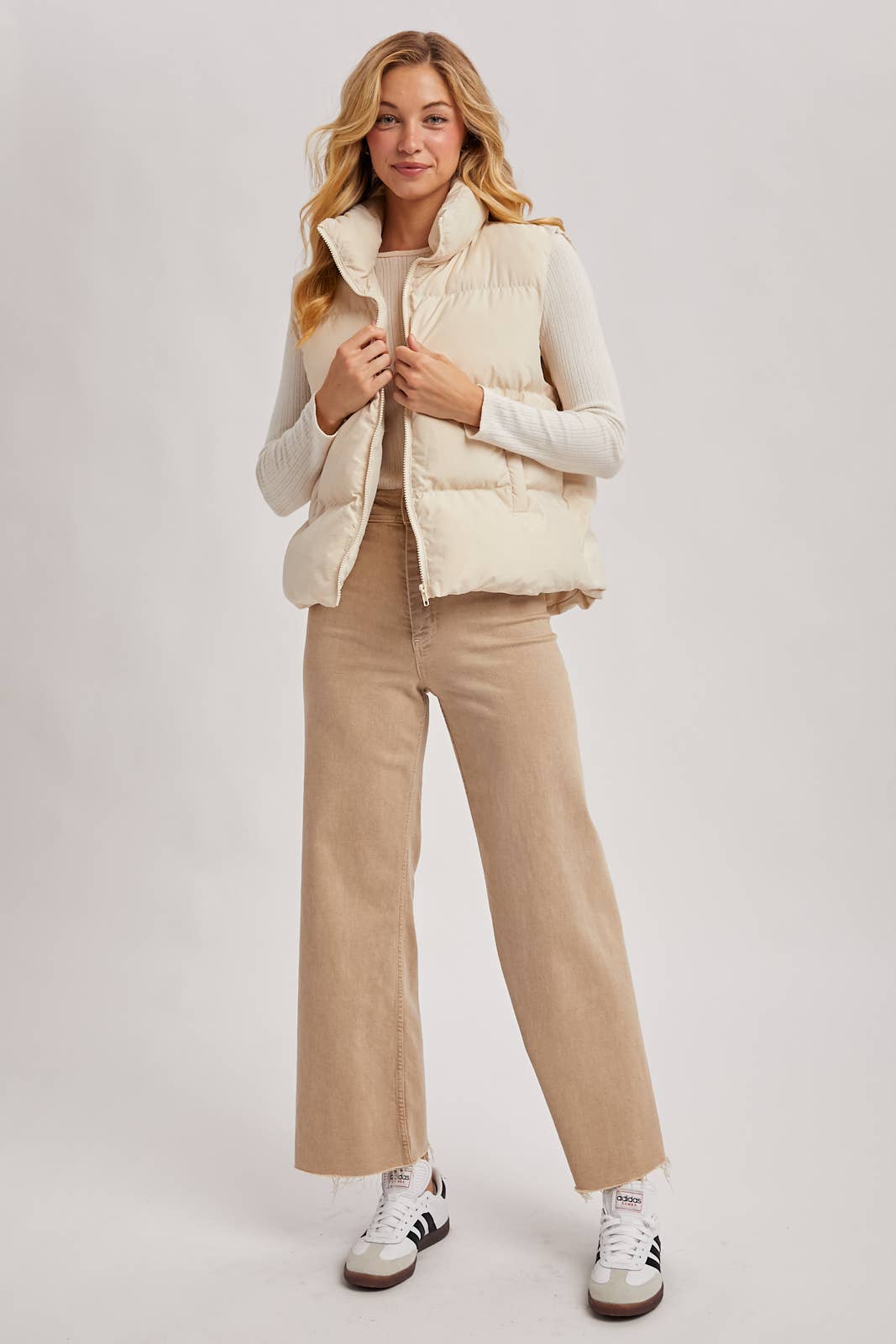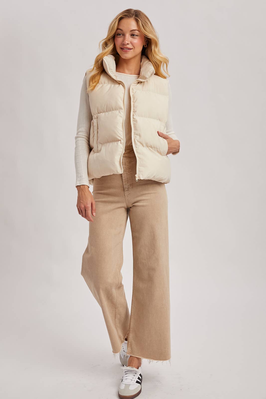 Stay warm without sacrificing style in the Midwest Frost Vest. Designed in a chic ecru shade, this puffer vest combines practicality with western-inspired flair. The zipper front closure and functional pockets keep it easy and convenient, while the sleek silhouette ensures a flattering fit.