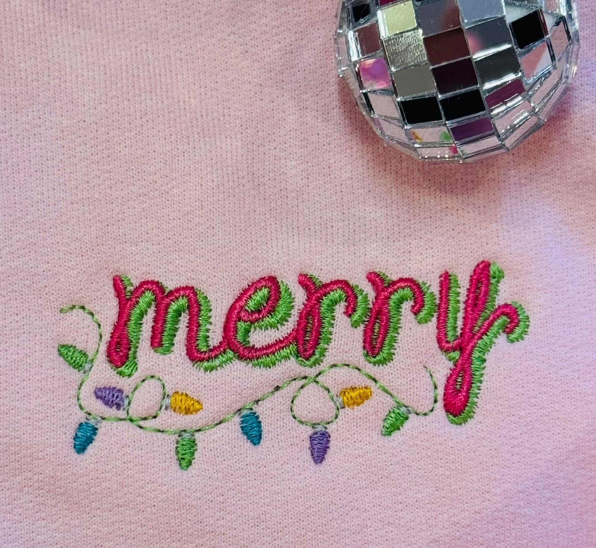 Merry Christmas Lights Embroidered Sweatshirt