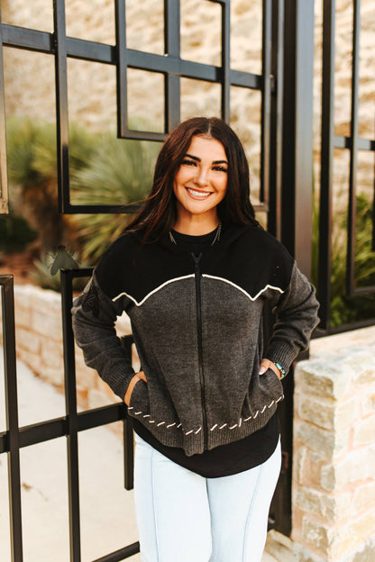 it's bring all the two tone vibes with a western rope detail -- YESSS that's a rope detail on a knit and it's cooler in person.