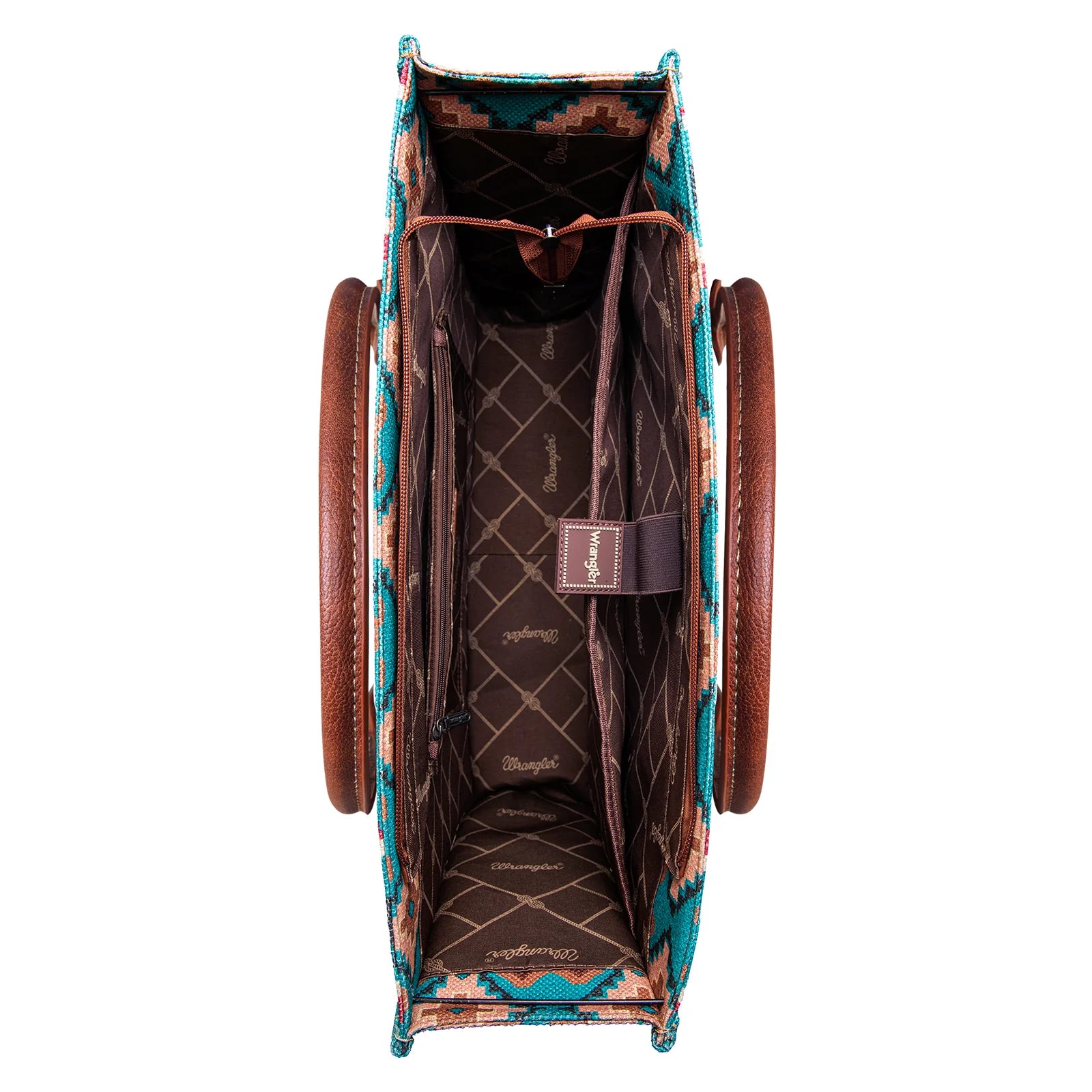 Wrangler Southwestern Pattern Dual Sided Print Canvas Wide Tote Dark Turquoise